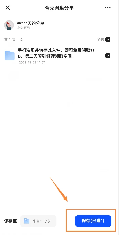 手机注册并转存此文件,即可免费领取1TB,第二天签到继续领取空间!