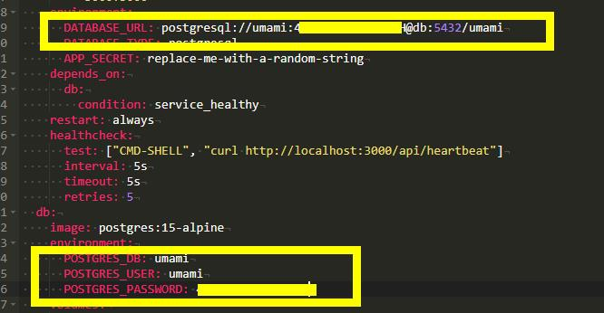- postgresql://umami:你的数据库密码@db:5432/umami